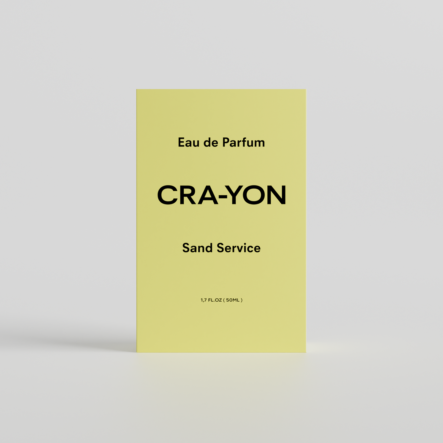CRA-YON 'Sand Service' Eau de Parfum box in pastel yellow packaging, standing on white background